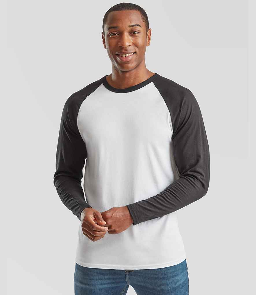 The Fruit of the Loom SS32 Contrast Baseball T-Shirt features long sleeves and a classic two-tone design for sporty, casual comfort.