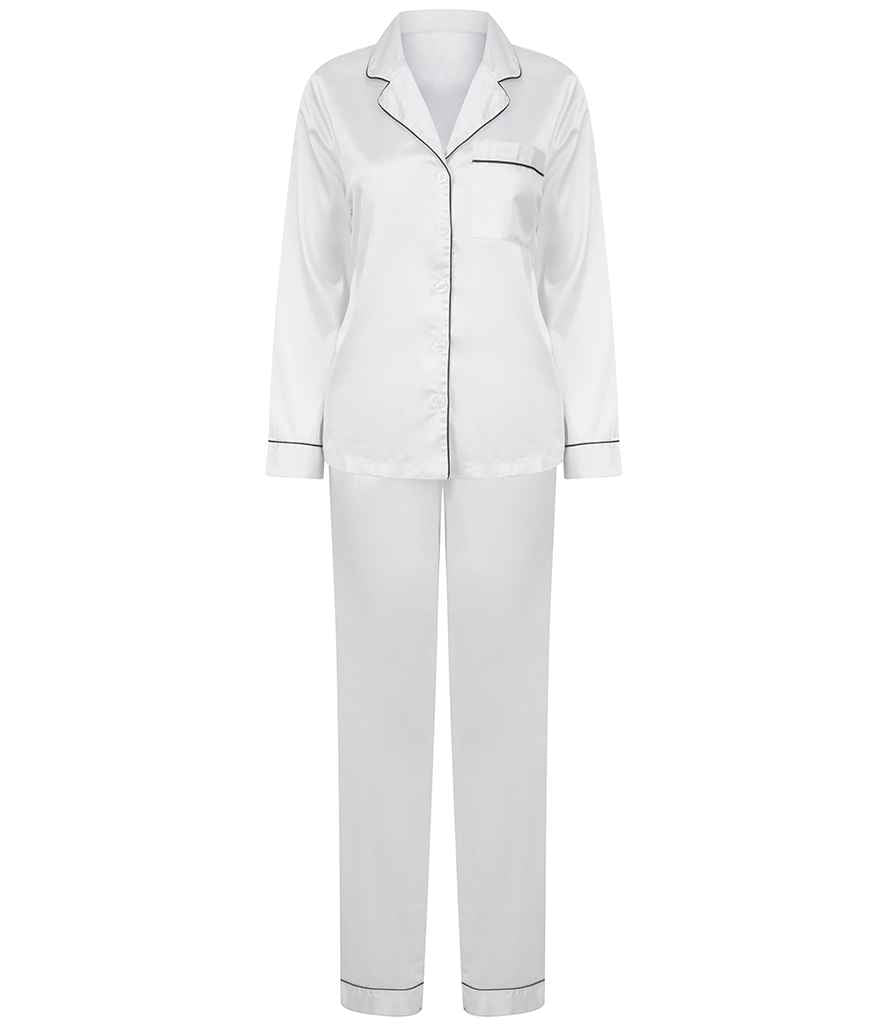 Towel City Ladies Satin Long PJ's | White